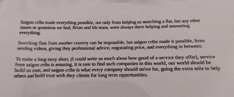 Oliver says: “It is rare to find such companies in this world. Our world should be built on trust, and Saigon Cribs is what every company should strive for—going the extra mile to help others and build trust for long-term opportunities.”