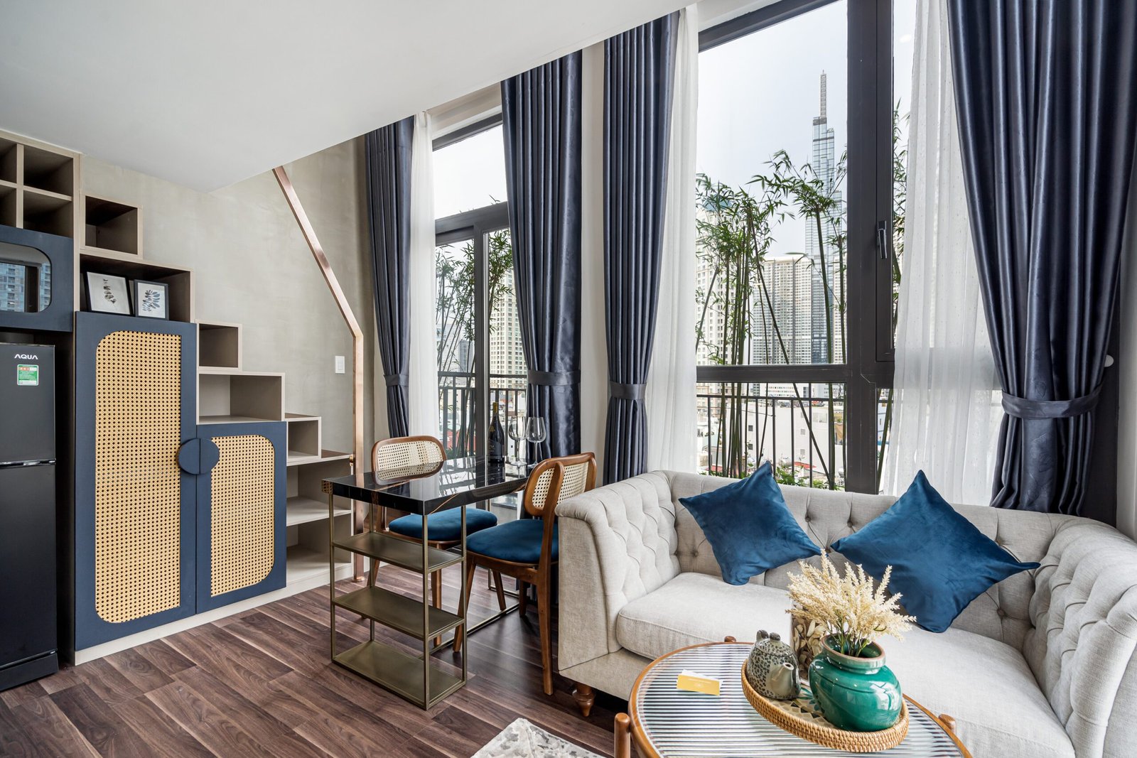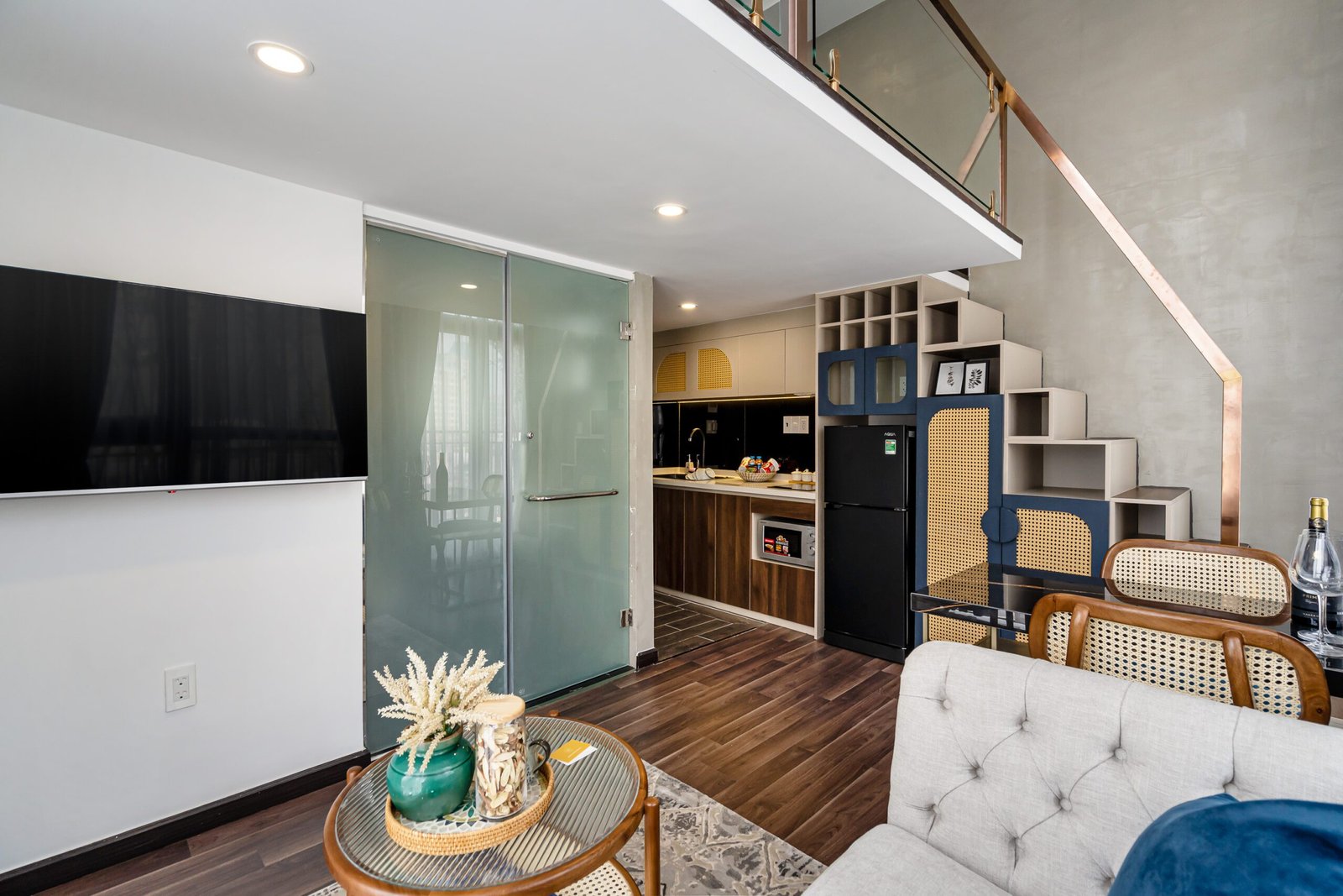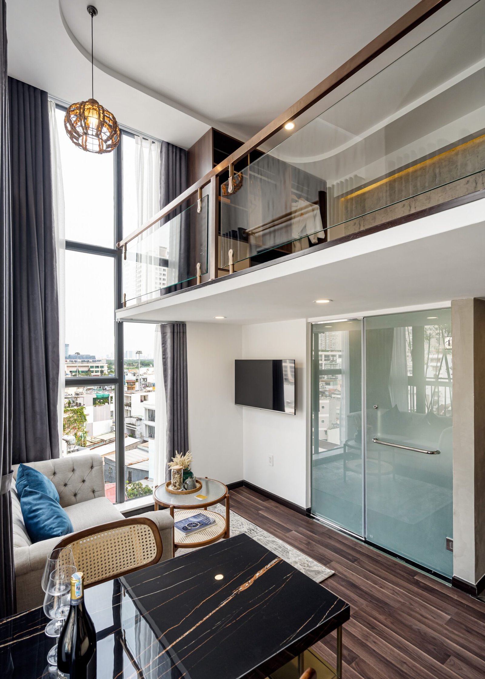 Imagine relaxing in a luxury modern space, enjoying Netflix on a comfy sofa, and stepping out onto your private balcony with city views. This stunning **Duplex Studio** is not just an apartment; it’s a lifestyle upgrade. Located in a premium building with resort-style amenities, this is the perfect “soft landing” for professionals moving to Saigon.