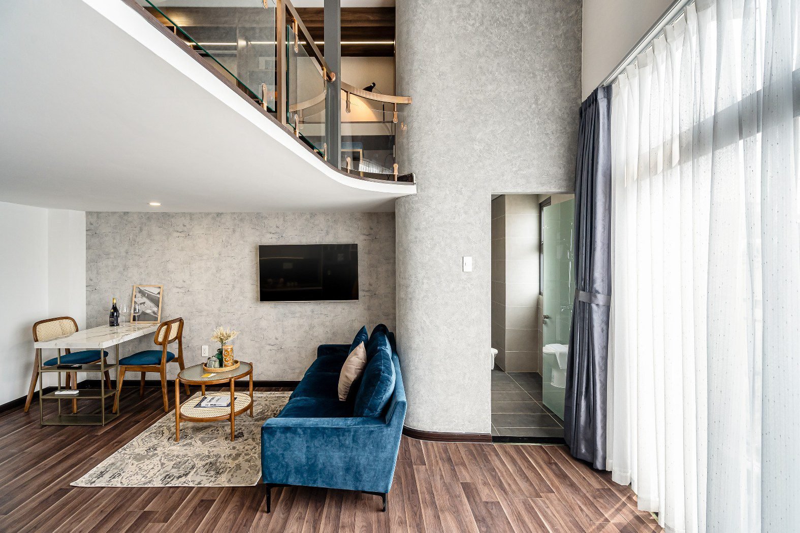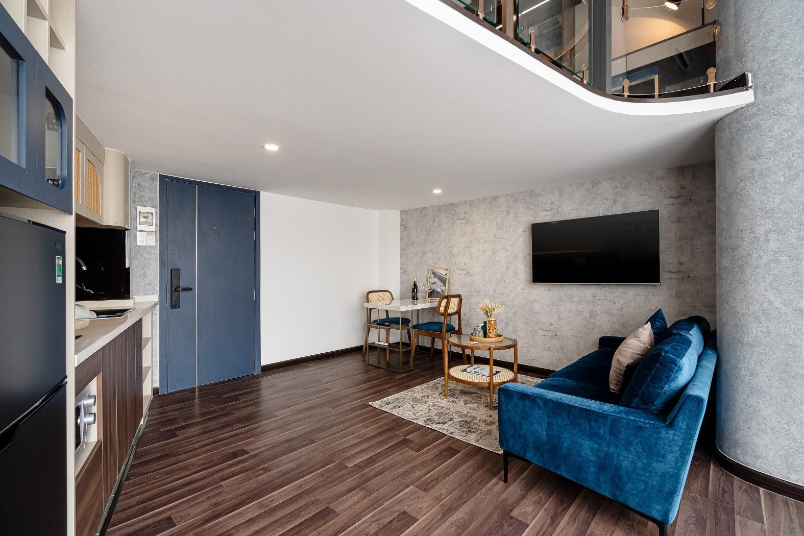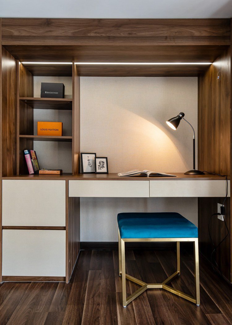 - 💻 The Executive Desk: Located on the upper mezzanine next to the sleeping area, the **Large Work Station** offers a quiet, commanding view of the apartment, separating your work zone from your relaxation zone.
