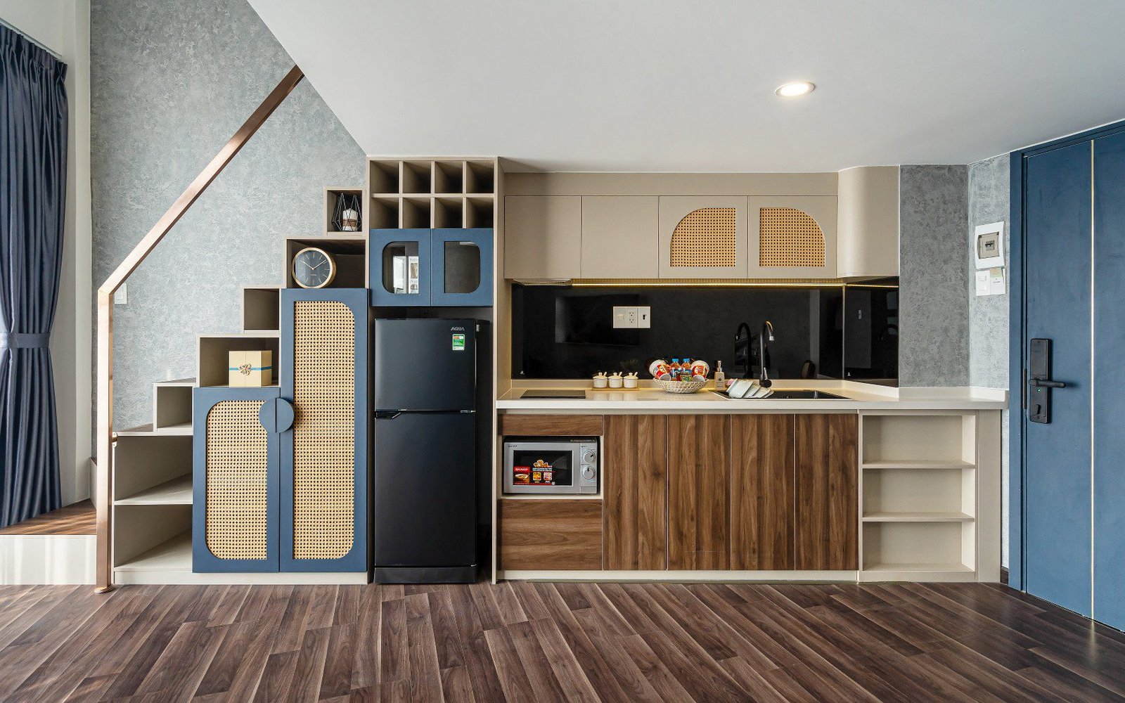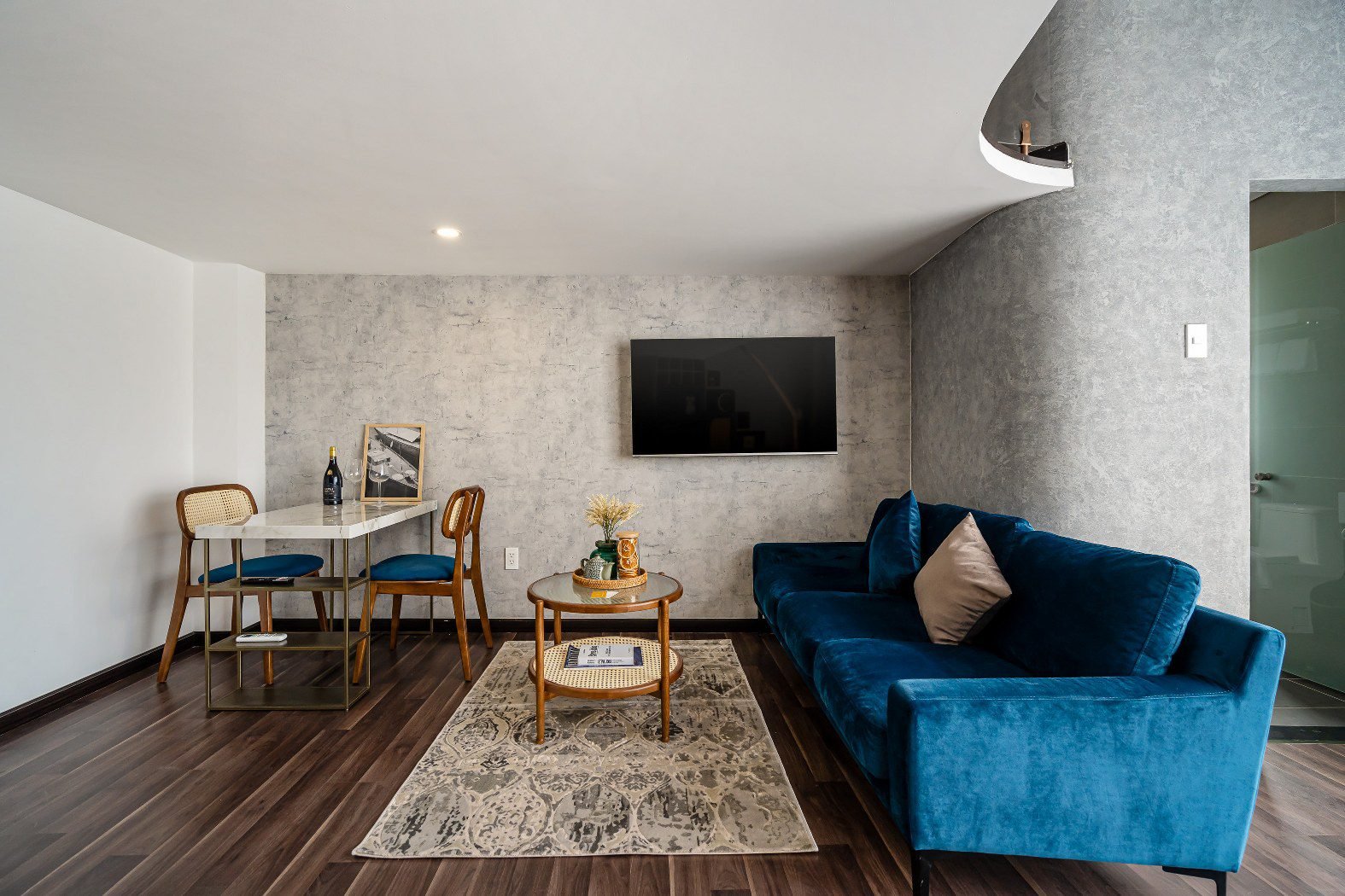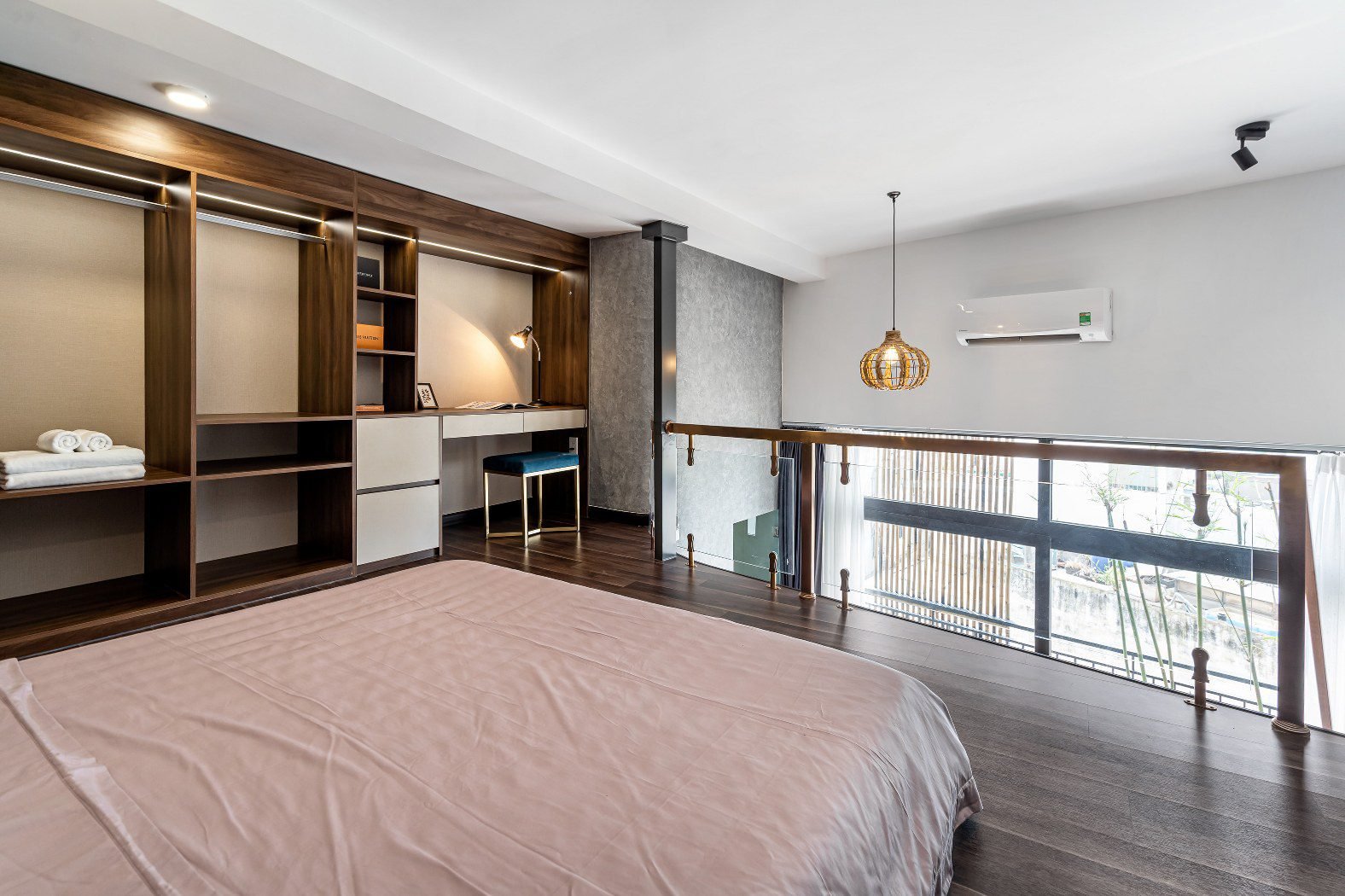 - 💻 The Executive Desk: Located on the upper mezzanine next to the sleeping area, the **Large Work Station** offers a quiet, commanding view of the apartment, separating your work zone from your relaxation zone.